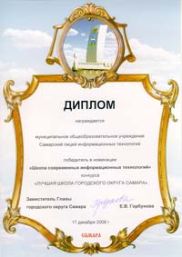 Благодарственное письмо было направлено в адрес Самарского лицея информационных технологий. |